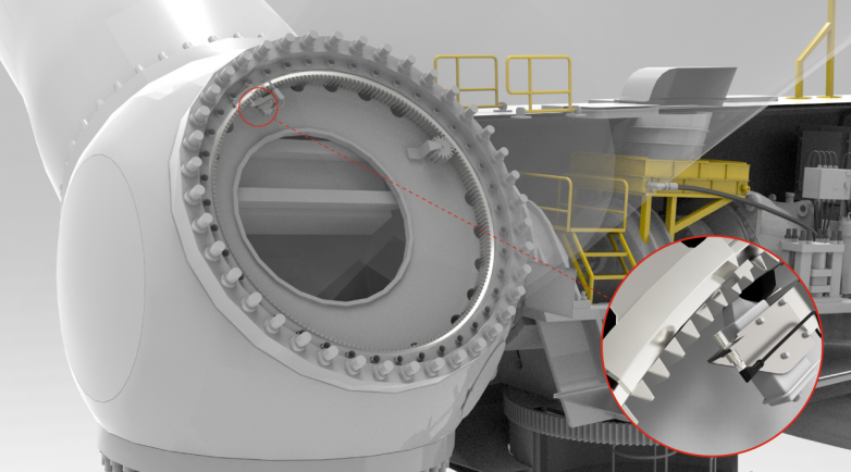 在桨叶自转过程中,LR18XG电感式传感器通过检测电动变桨系统中旋转桨叶末端的金属标记物,判断桨叶是否旋转至预设角度。当桨叶到达目标位置时,电感传感器输出开关量信号,确保桨距角在安全范围内,从而优化风能捕获效率并避免超载风险。